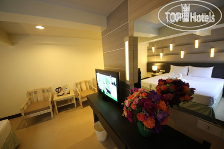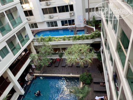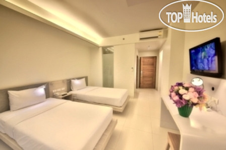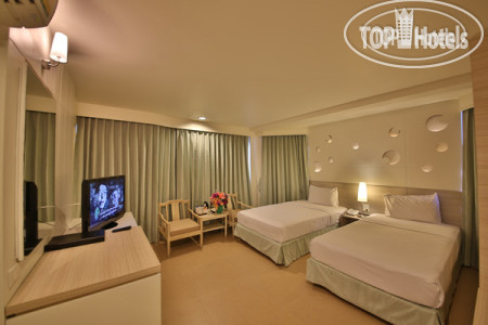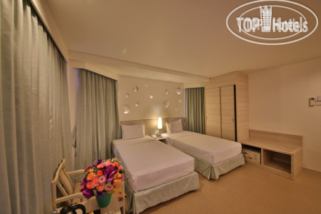 Номера небольшие (мы жили в делюкс на 7ом этаже). Одна большая огромная кровать (можно втроем смело спать). И просили поставили доп.кровать. И на этом место можно сказать закончилось в номере. Холодильник (напитки что в холодильнике все платные, при выезде проверяют. Если чего то нет сразу говорите при заселении). Телевизор с двумя русскими каналами. Кондционер. Душевая кабинка со шторкой (в обычных номерах говорят без шторки). Вода горячая всегда была. Фен есть. Мыло, гель для душа, шампунь всегда приносили. Уборка номеров нормальная. У нас был балкончик и сушилка на нем для вещей. Окна во двор выходили, шума с улицы вечером и ночью практически не слышно. Если окна будут на soi 8 выходить то наверное будет пошумнее, там бары.