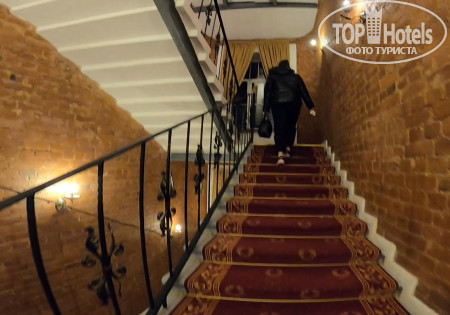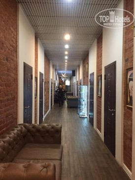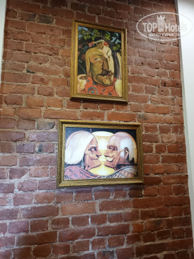 Перейдём к обзору отеля. "Петровский Арт Лофт" нам понравился своим видом, как снаружи, так и внутри. Всё сделано красиво, приятно находиться. Красные ковровые дорожки на полу и кирпичные стены украшенные необычными картинами создают ощущение, как будто ты находишься в галерее.